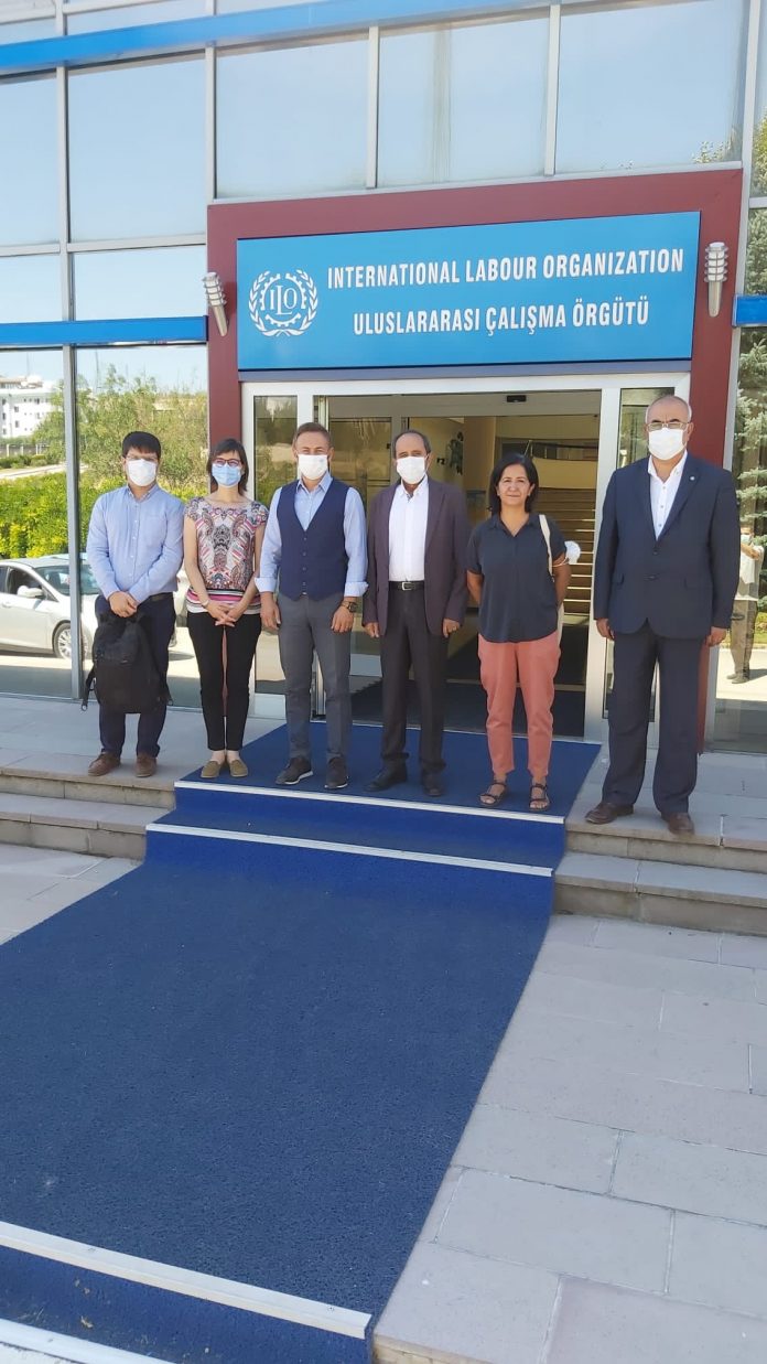 KESK delegation visited ILO Office for Turkey on 30 July 2021. The delegation, co-president Mr Mehmet Bozgeyik, general secretary Mr Senol Koksal, women’s secretary Ms Done Gevher Koyun, and International Affairs Officer Mr Osman Isci, had a very fruitful meeting with Mr Numan Ozcan, the Director.